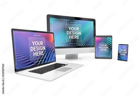 Mockup Computer Tablet Phone . Placeit is the perfect mockup generator. 3d illustration desktop computer blank mock up.